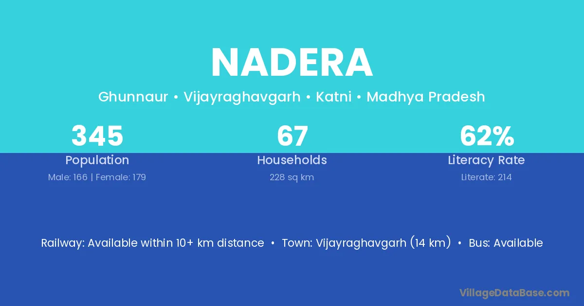 Nadera village has a total population of 449 people, of which 231 are males and 218 are females.