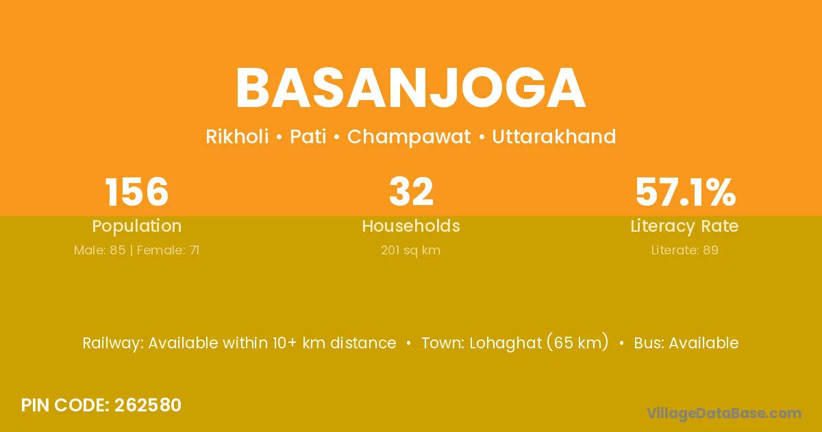 Lohaghat (65 km) is the nearest town to Basanjoga village for major economic activities and is located approximately 65 km away.