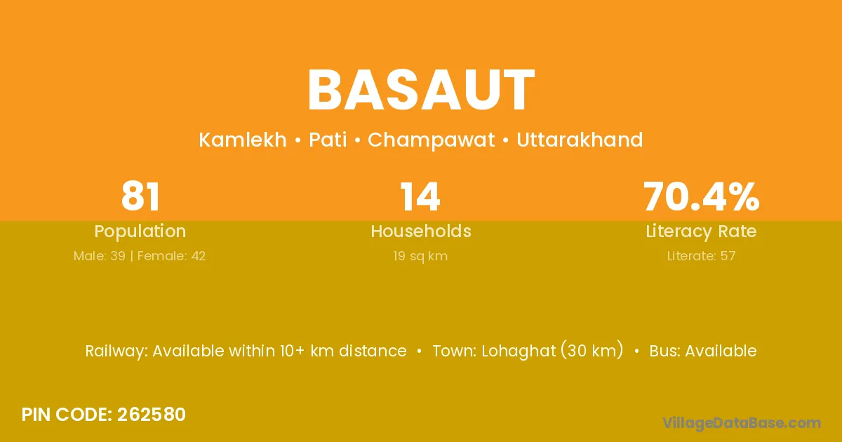 Lohaghat (30 km) is the nearest town to Basaut village for major economic activities and is located approximately 30 km away.