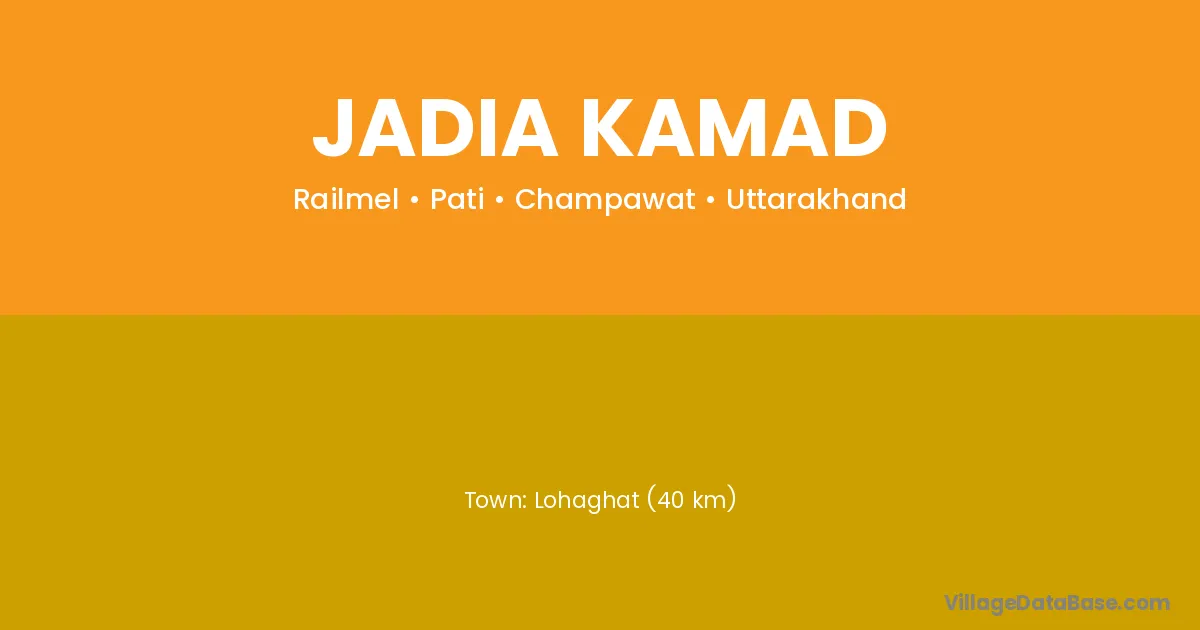 Lohaghat (40 km) is the nearest town to Jadia Kamad village for major economic activities and is located approximately 40 km away.