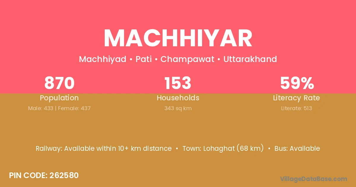 Machhiyar village has a total population of 870 people, of which 433 are males and 437 are females.