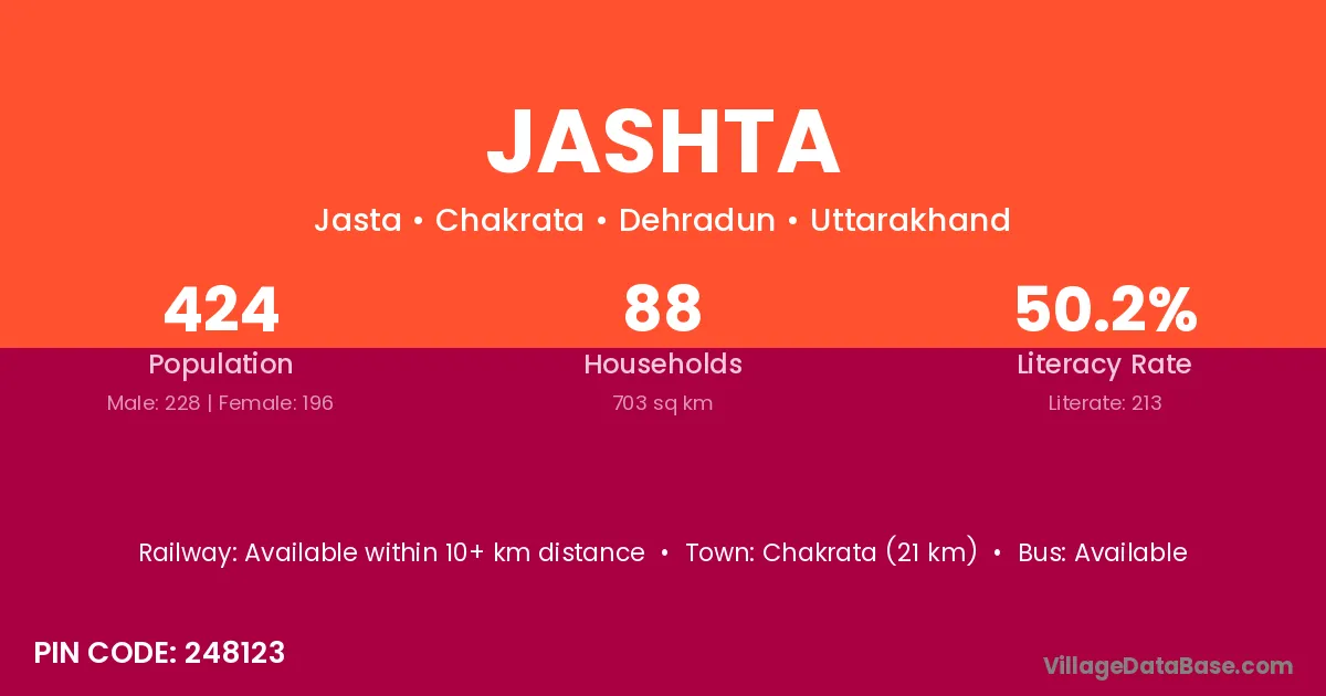 According to Census 2011 information, the village code of Jashta village is 248123.