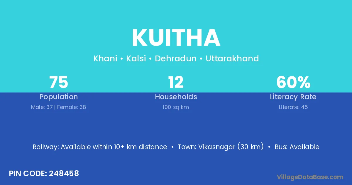 Vikasnagar (30 km) is the nearest town to Kuitha village for major economic activities and is located approximately 30 km away.