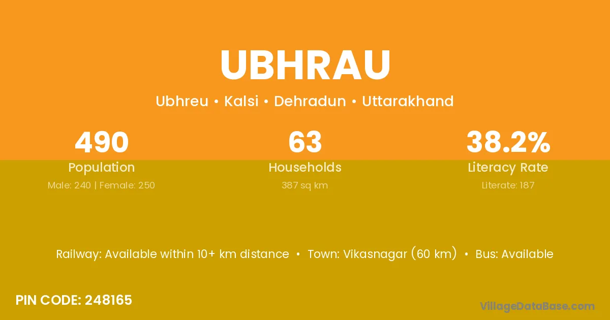 Vikasnagar (60 km) is the nearest town to Ubhrau village for major economic activities and is located approximately 60 km away.