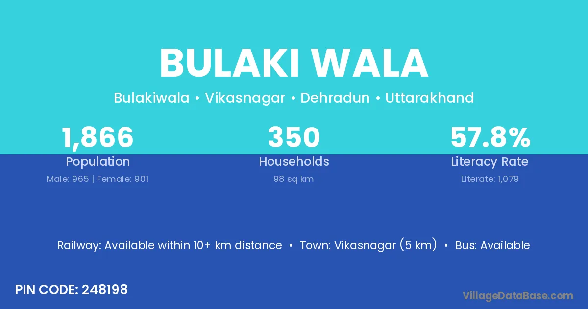 Vikasnagar (5 km) is the nearest town to Bulaki Wala village for major economic activities and is located approximately 5 km away.