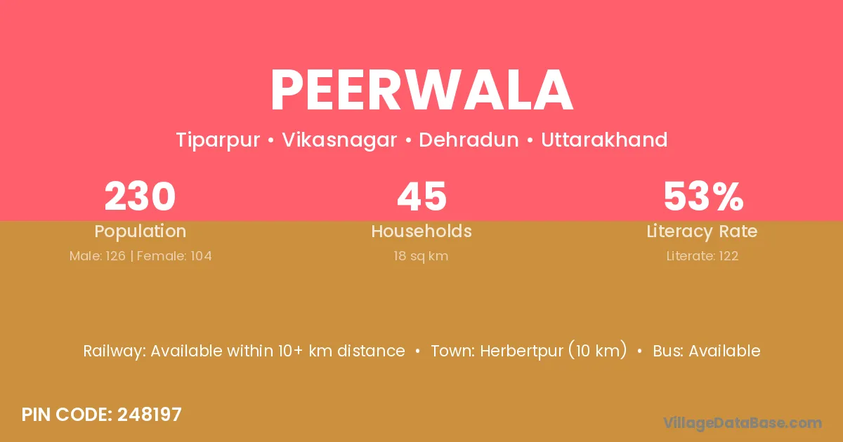 Herbertpur (10 km) is the nearest town to Peerwala village for major economic activities and is located approximately 10 km away.