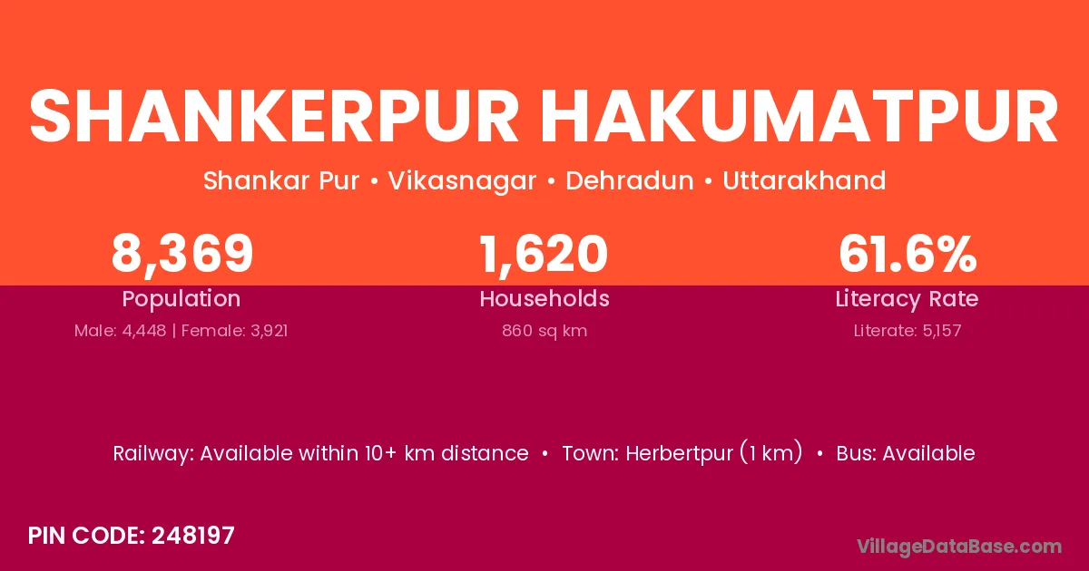 Herbertpur (1 km) is the nearest town to Shankerpur Hakumatpur village for major economic activities and is located approximately 1 km away.