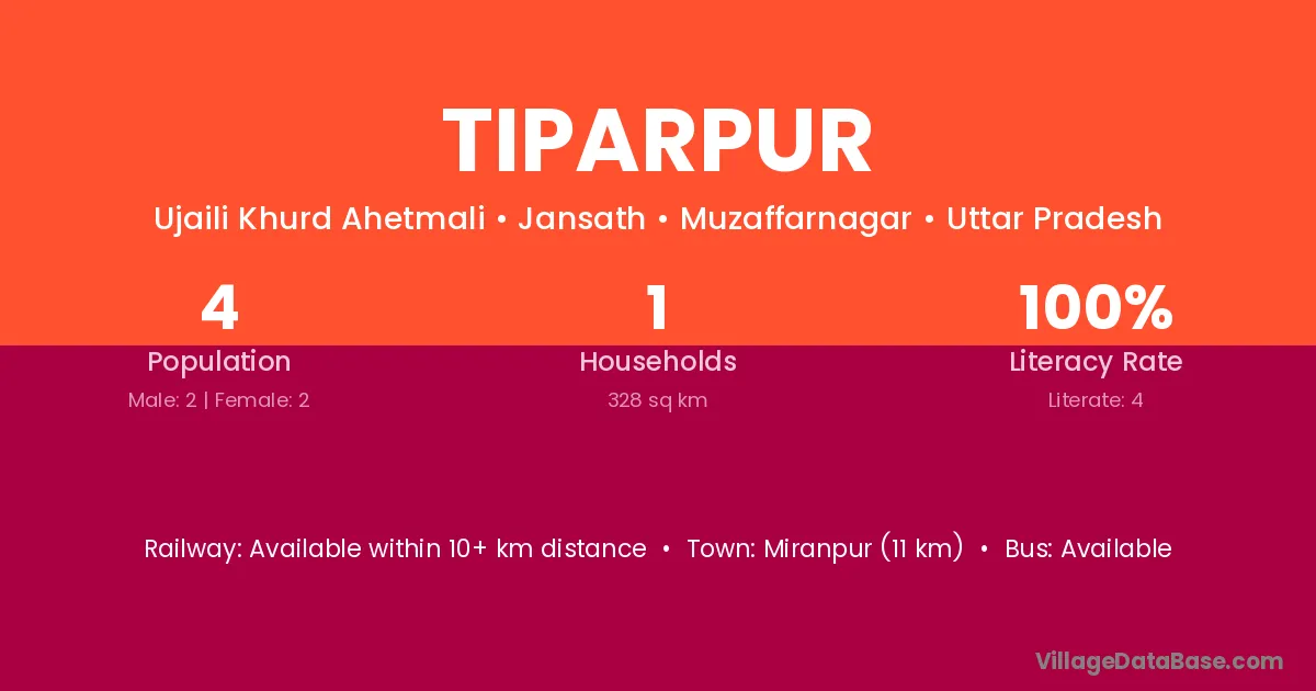 Herbertpur (10 km) is the nearest town to Tiparpur village for major economic activities and is located approximately 10 km away.