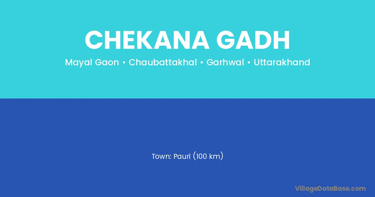 Pauri (100 km) is the nearest town to Chekana Gadh village for major economic activities and is located approximately 100 km away.
