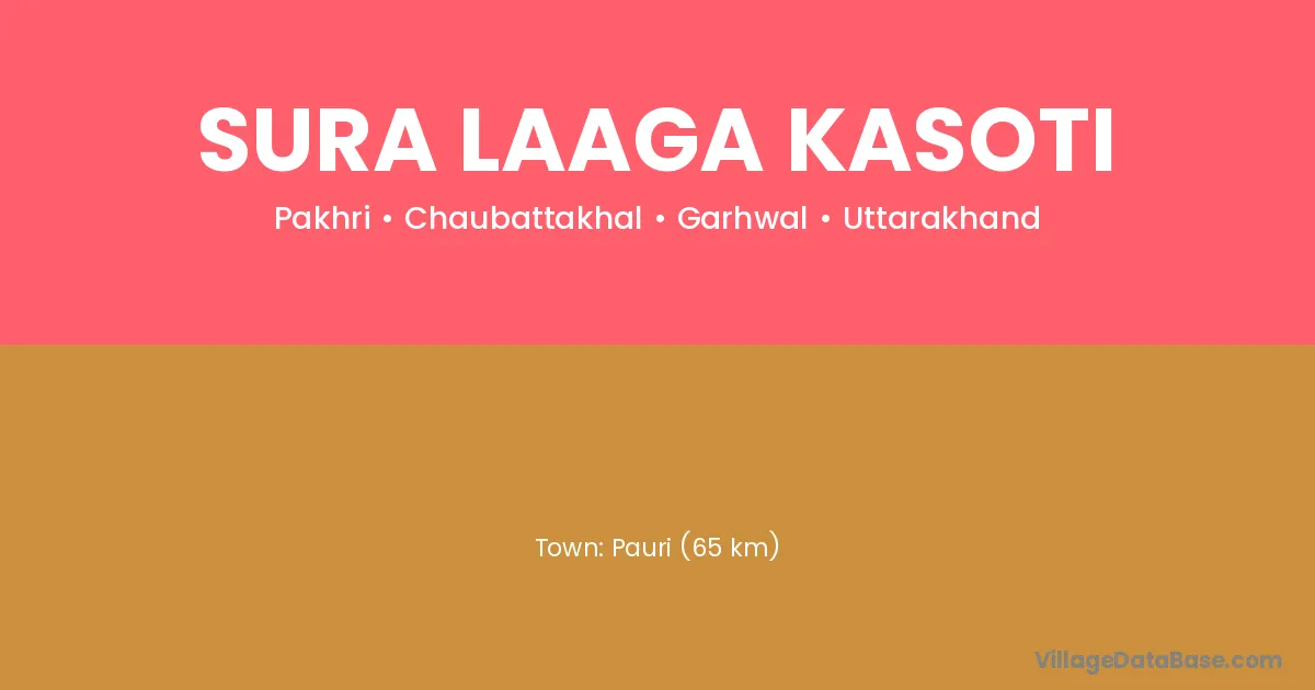 Pauri (65 km) is the nearest town to Sura Laaga Kasoti village for major economic activities and is located approximately 65 km away.