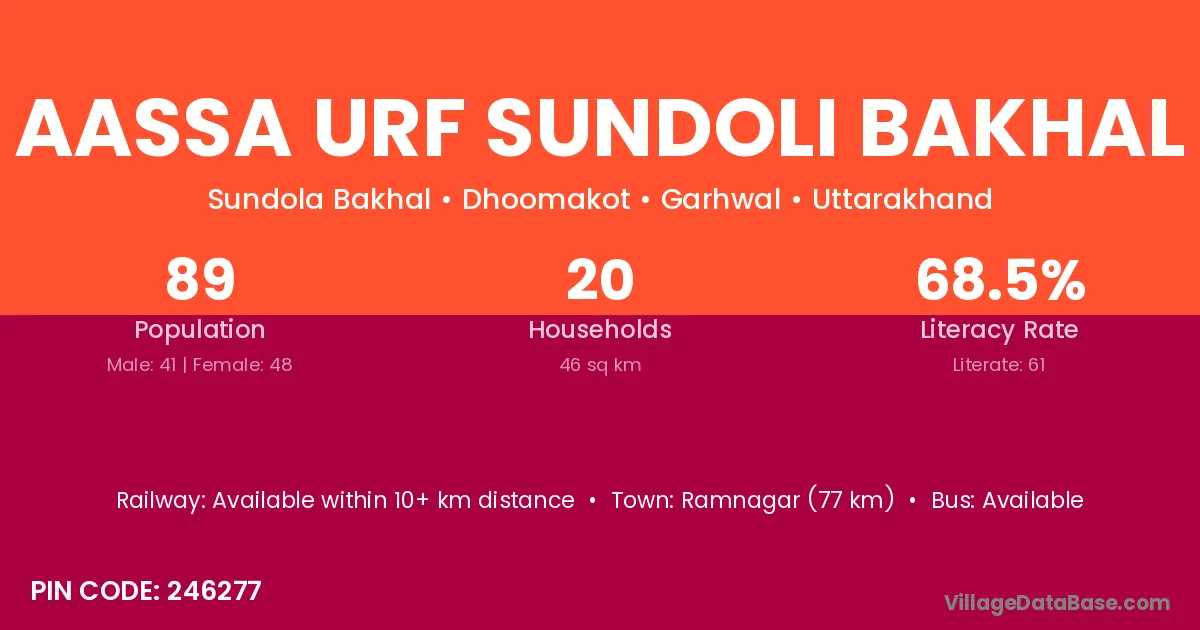 Ramnagar (77 km) is the nearest town to Aassa Urf Sundoli Bakhal village for major economic activities and is located approximately 77 km away.