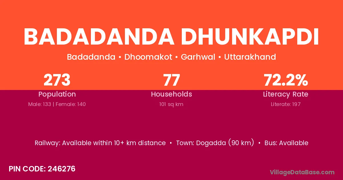 According to Census 2011 information, the village code of Badadanda Dhunkapdi village is 246276.