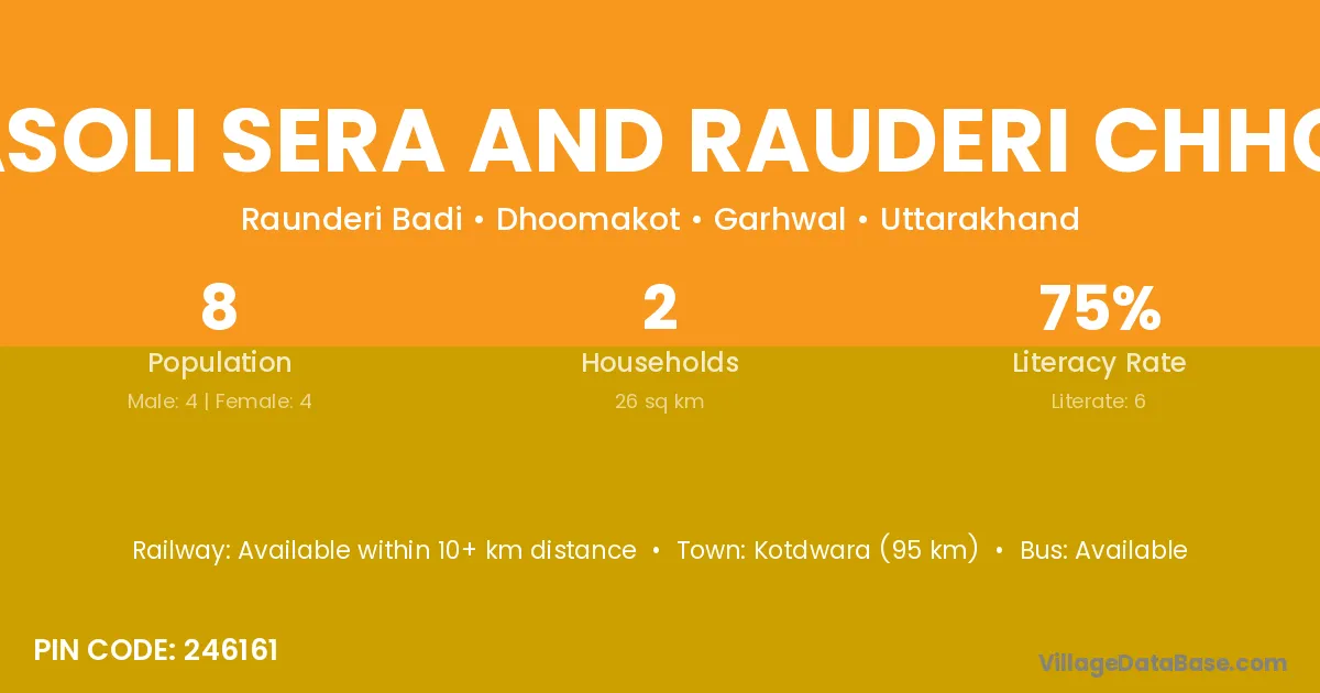 Basoli Sera And Rauderi Chhoti village has a total population of 8 people, of which 4 are males and 4 are females.
