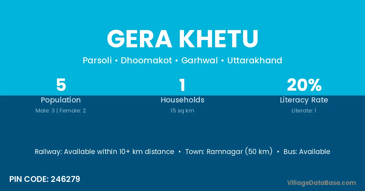 Gera Khetu village has a total population of 5 people, of which 3 are males and 2 are females.