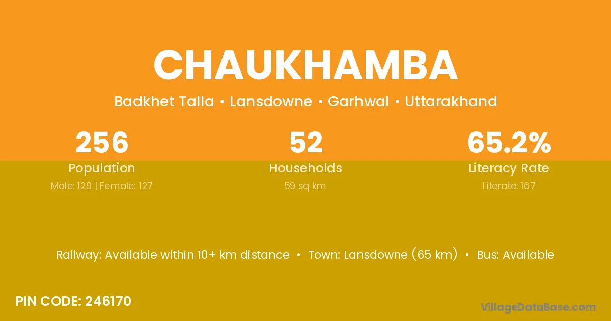 Chaukhamba village has a total population of 256 people, of which 129 are males and 127 are females.