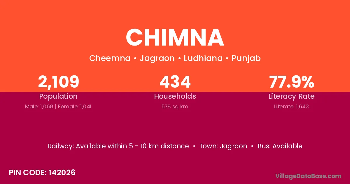 Lansdowne (77 km) is the nearest town to Chimna village for major economic activities and is located approximately 77 km away.