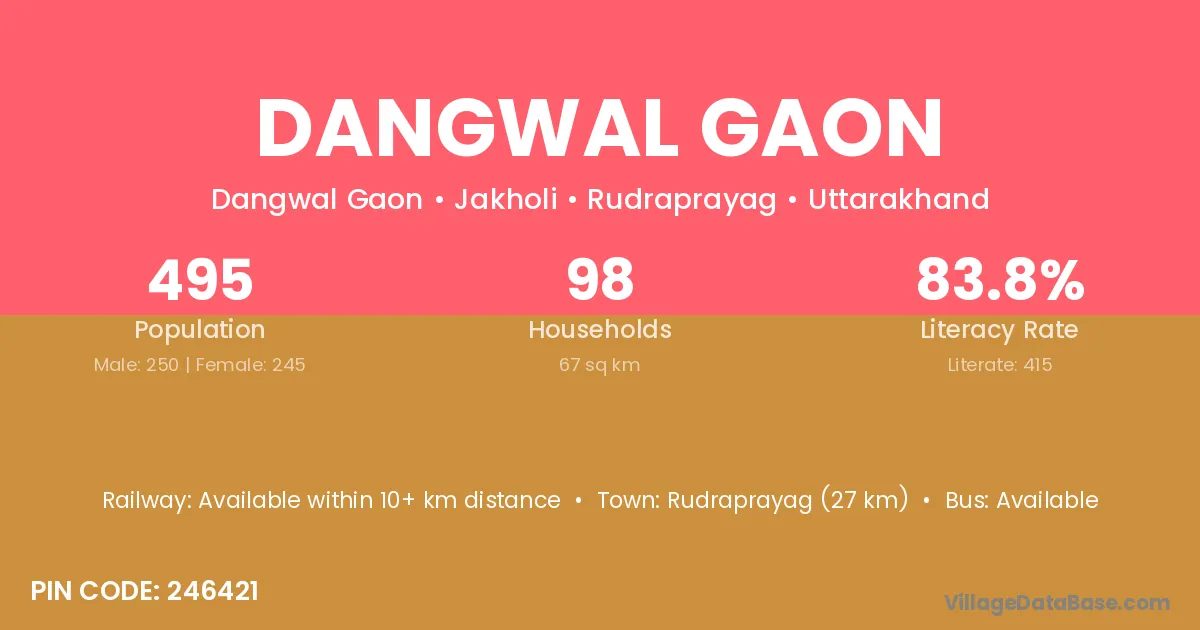 According to Census 2011 information, the village code of Dangwal Gaon village is 246155.