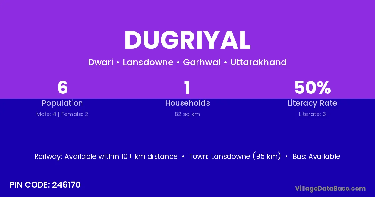 Dugriyal village has a total population of 6 people, of which 4 are males and 2 are females.