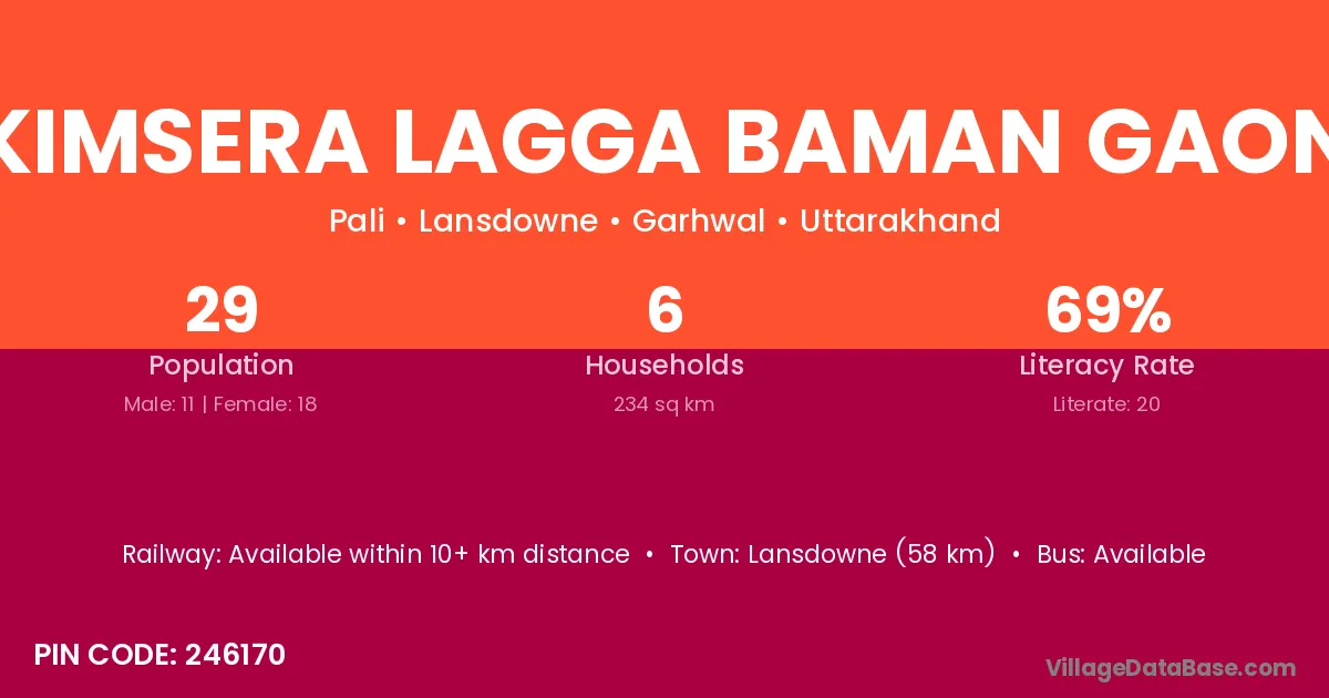 Lansdowne (58 km) is the nearest town to Kimsera Lagga Baman Gaon village for major economic activities and is located approximately 58 km away.