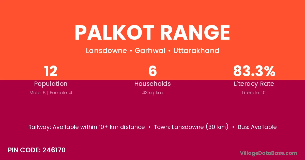 Lansdowne (30 km) is the nearest town to Palkot Range village for major economic activities and is located approximately 30 km away.
