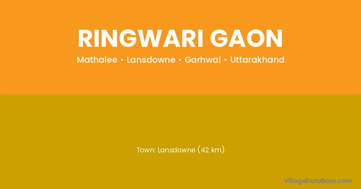 Lansdowne (42 km) is the nearest town to Ringwari Gaon village for major economic activities and is located approximately 42 km away.