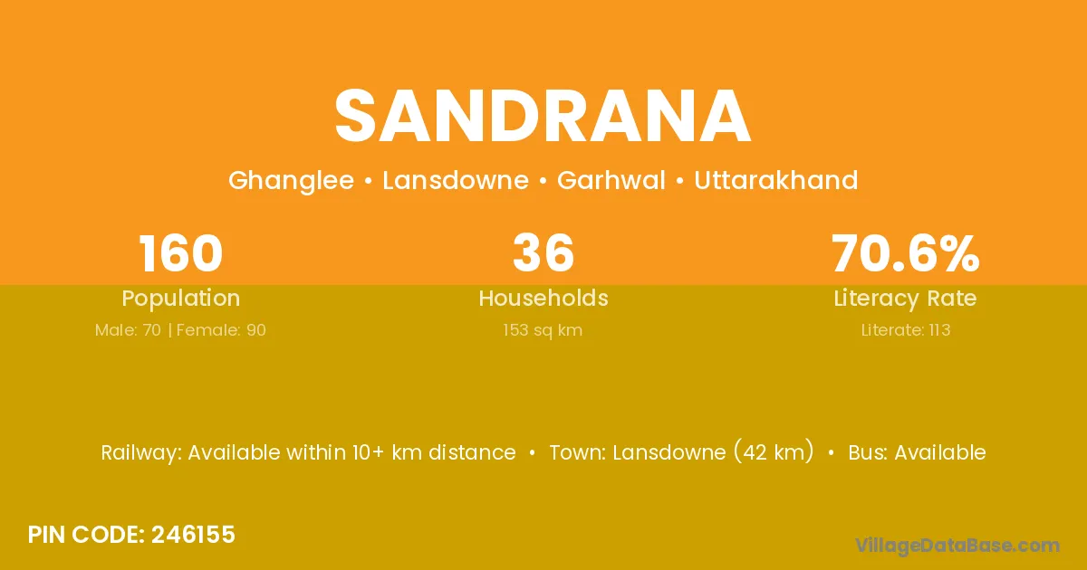 Lansdowne (42 km) is the nearest town to Sandrana village for major economic activities and is located approximately 42 km away.