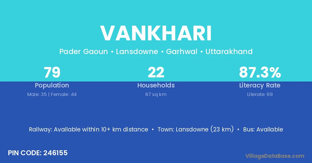 Lansdowne (23 km) is the nearest town to Vankhari village for major economic activities and is located approximately 23 km away.
