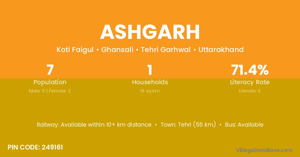 Pauri (31 km) is the nearest town to Ashgarh village for major economic activities and is located approximately 31 km away.