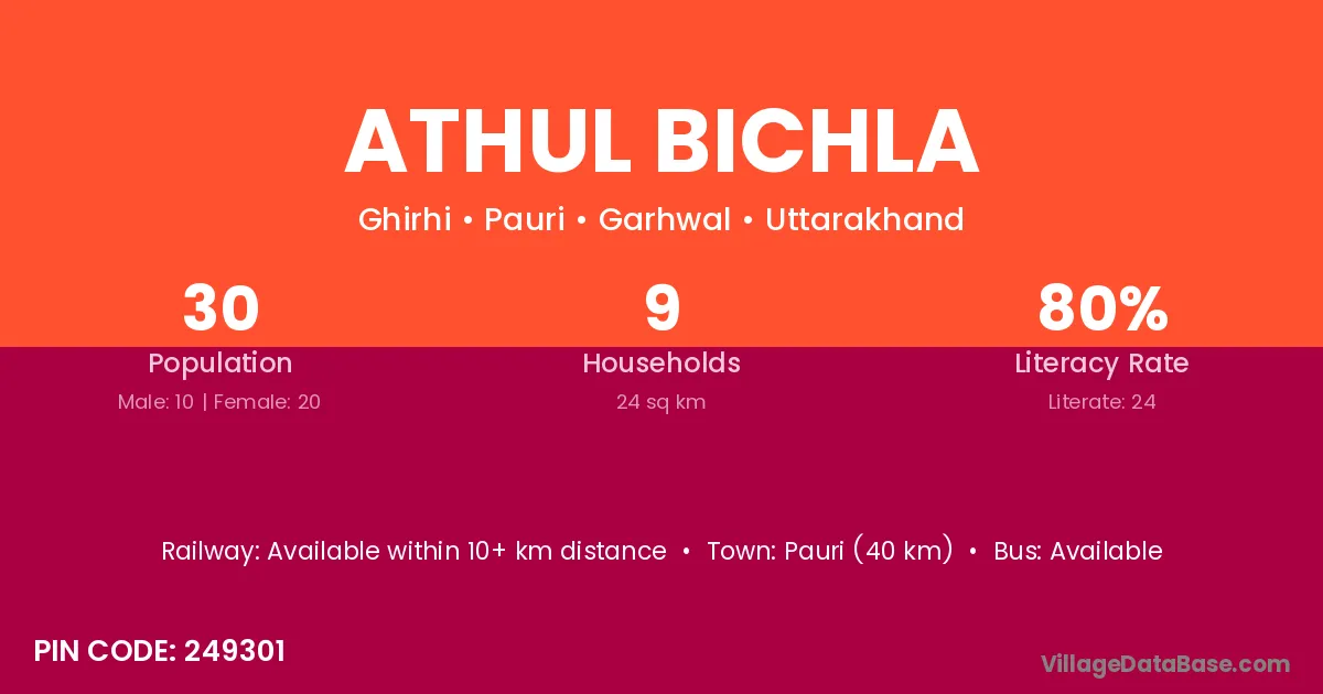 Pauri (40 km) is the nearest town to Athul Bichla village for major economic activities and is located approximately 40 km away.