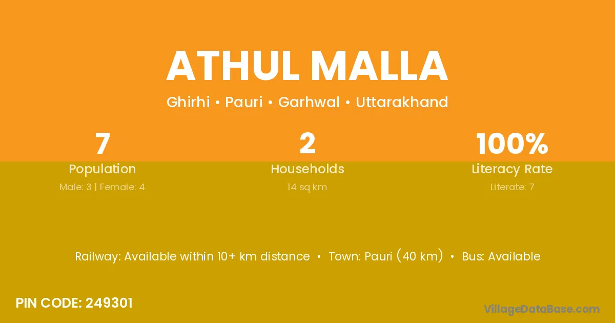 According to Census 2011 information, the village code of Athul Malla village is 249301.