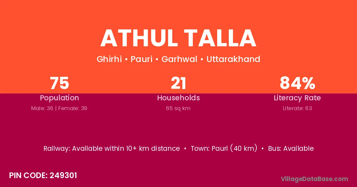 Pauri (40 km) is the nearest town to Athul Talla village for major economic activities and is located approximately 40 km away.
