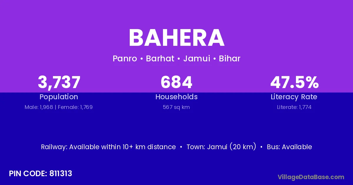 According to Census 2011 information, the village code of Bahera village is 246146.