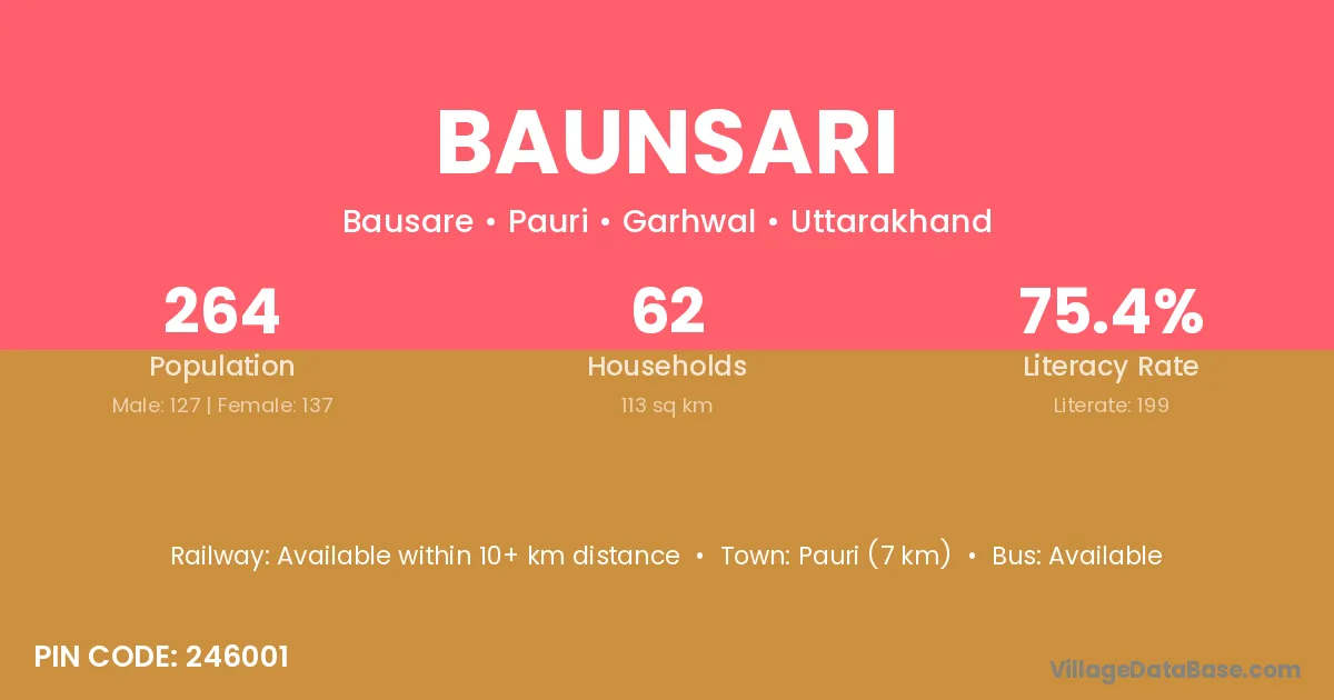 Pauri (7 km) is the nearest town to Baunsari village for major economic activities and is located approximately 7 km away.