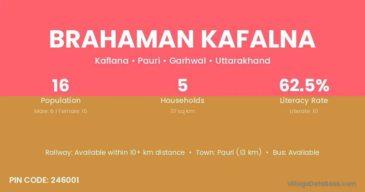 Pauri (13 km) is the nearest town to Brahaman Kafalna village for major economic activities and is located approximately 13 km away.