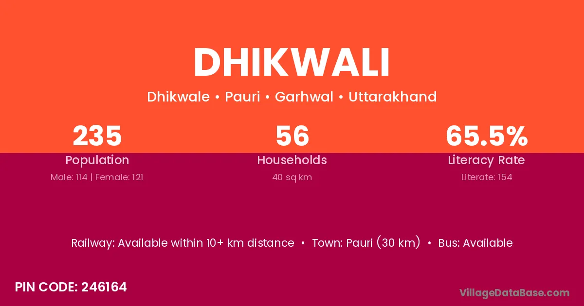 Dhikwali village has a total population of 235 people, of which 114 are males and 121 are females.