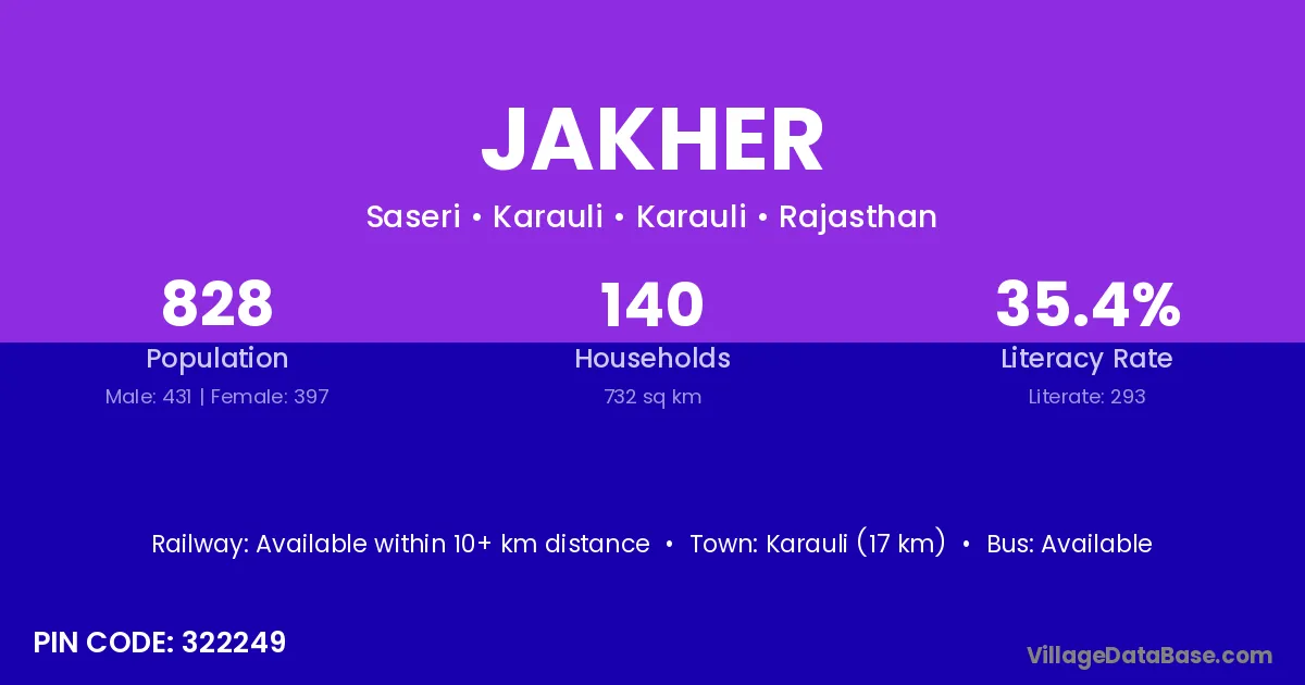 According to Census 2011 information, the village code of Jakher village is 246001.