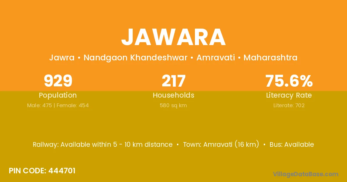 Jawara village has a total population of 106 people, of which 50 are males and 56 are females.