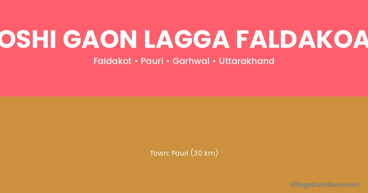 Pauri (30 km) is the nearest town to Joshi Gaon Lagga Faldakoat village for major economic activities and is located approximately 30 km away.