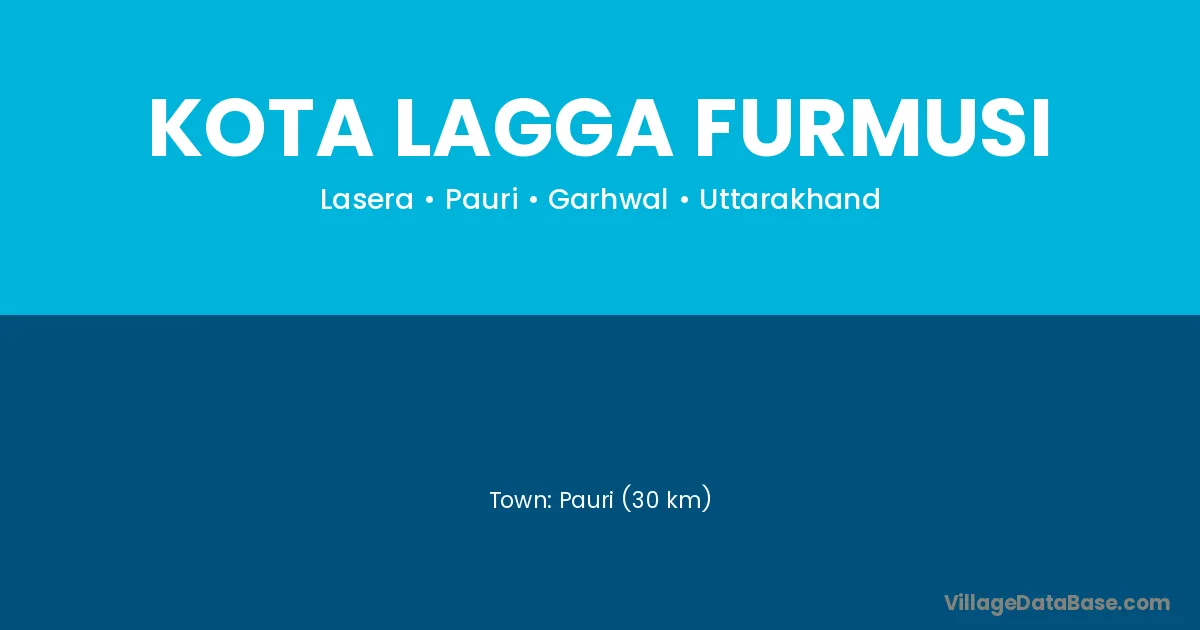 Pauri (30 km) is the nearest town to Kota Lagga Furmusi village for major economic activities and is located approximately 30 km away.