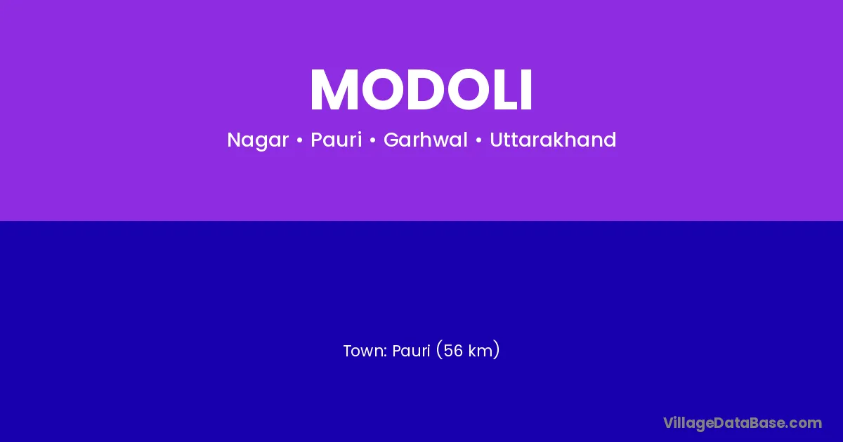 Pauri (56 km) is the nearest town to Modoli village for major economic activities and is located approximately 56 km away.
