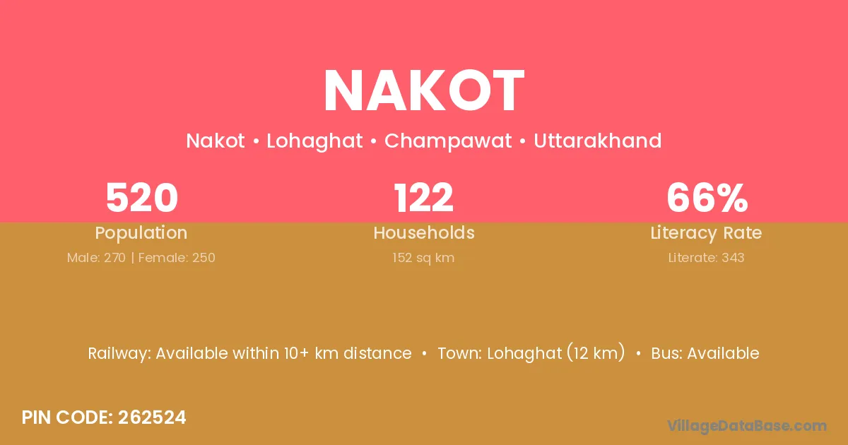 Pauri (10 km) is the nearest town to Nakot village for major economic activities and is located approximately 10 km away.