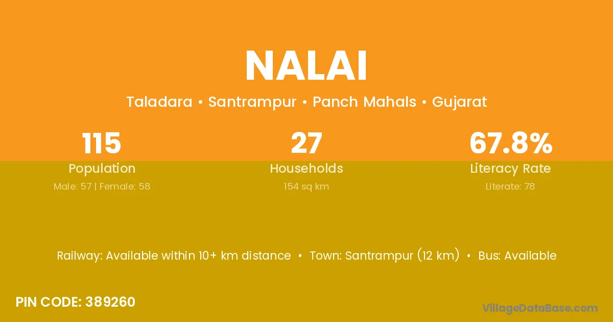 The literacy rate of Nalai village is 62.85%. Male literacy stands at 75.23% and female literacy at 54.02%.