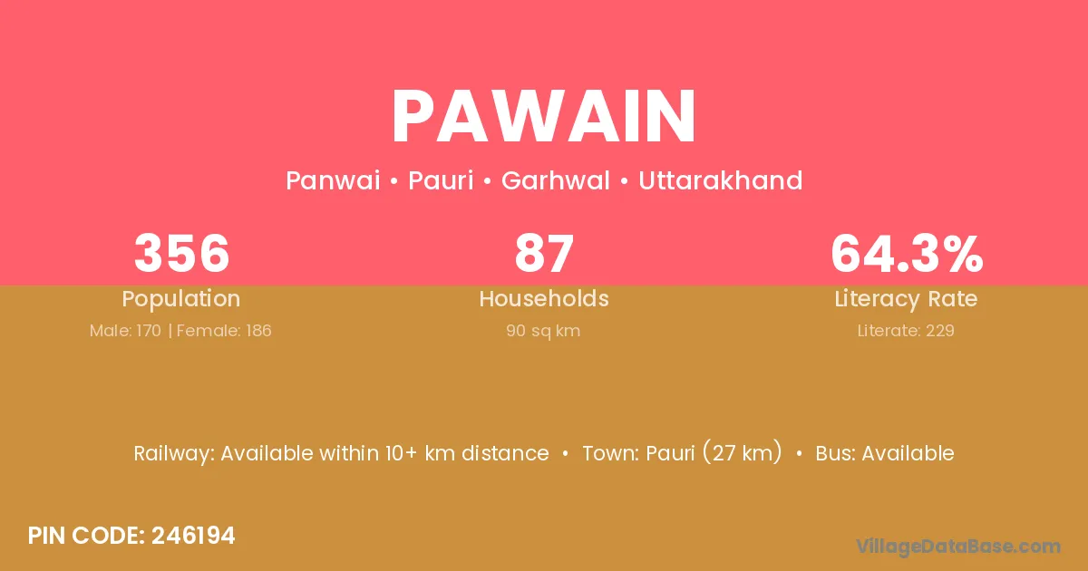Pauri (27 km) is the nearest town to Pawain village for major economic activities and is located approximately 27 km away.