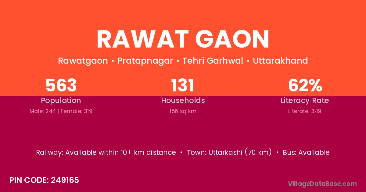 Pauri (6 km) is the nearest town to Rawat Gaon village for major economic activities and is located approximately 6 km away.