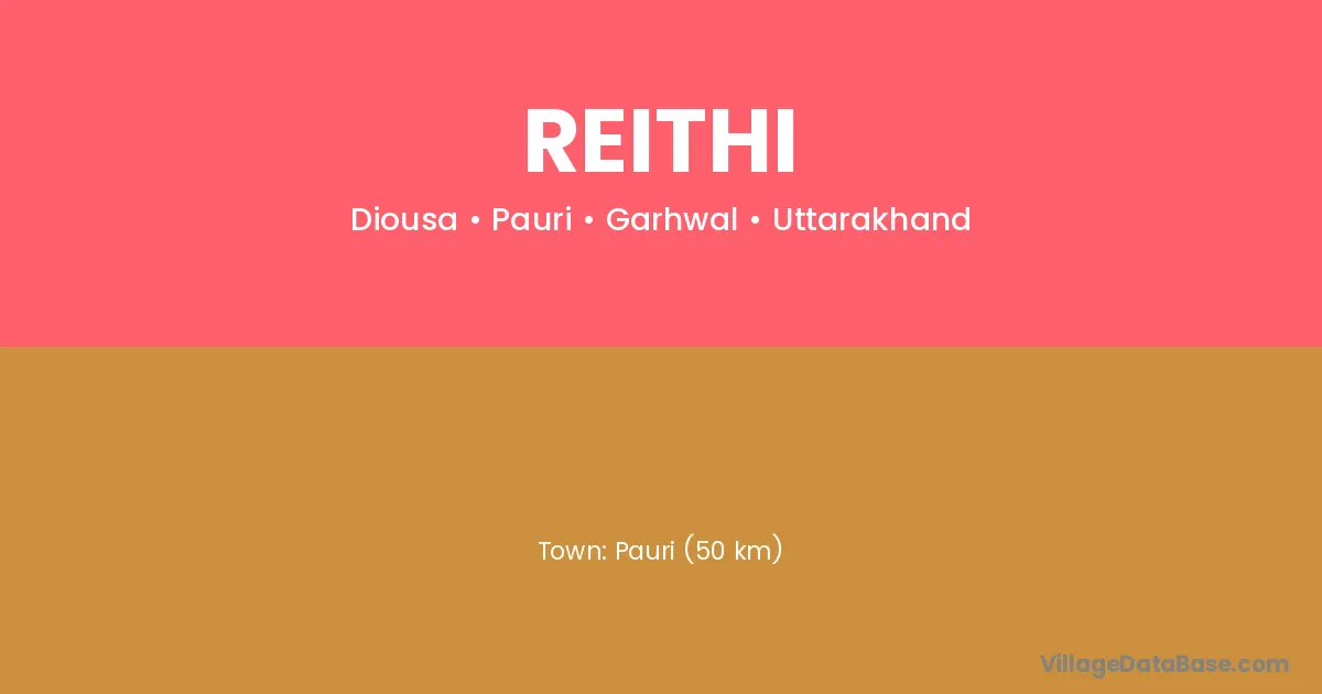 Pauri (50 km) is the nearest town to Reithi village for major economic activities and is located approximately 50 km away.