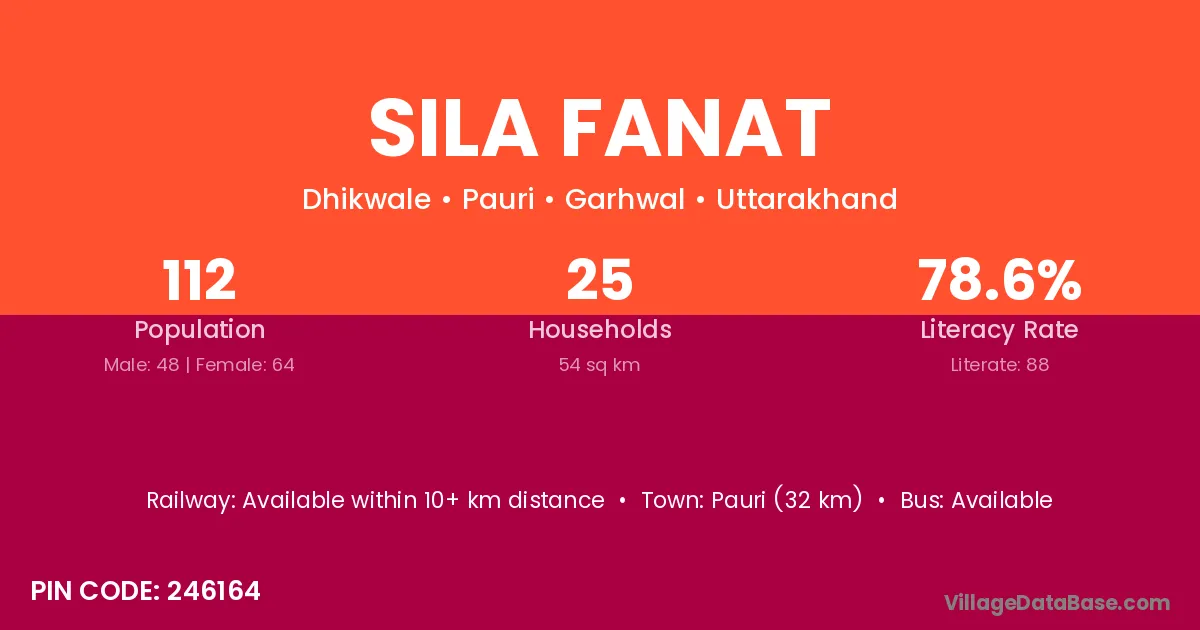 Pauri (32 km) is the nearest town to Sila Fanat village for major economic activities and is located approximately 32 km away.