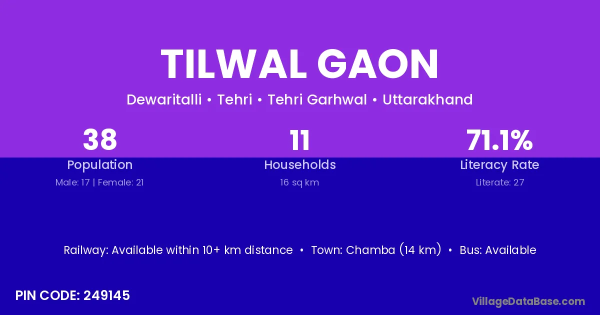 Devprayag (30 km) is the nearest town to Tilwal Gaon village for major economic activities and is located approximately 30 km away.
