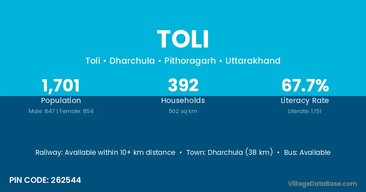 Pauri (40 km) is the nearest town to Toli village for major economic activities and is located approximately 40 km away.