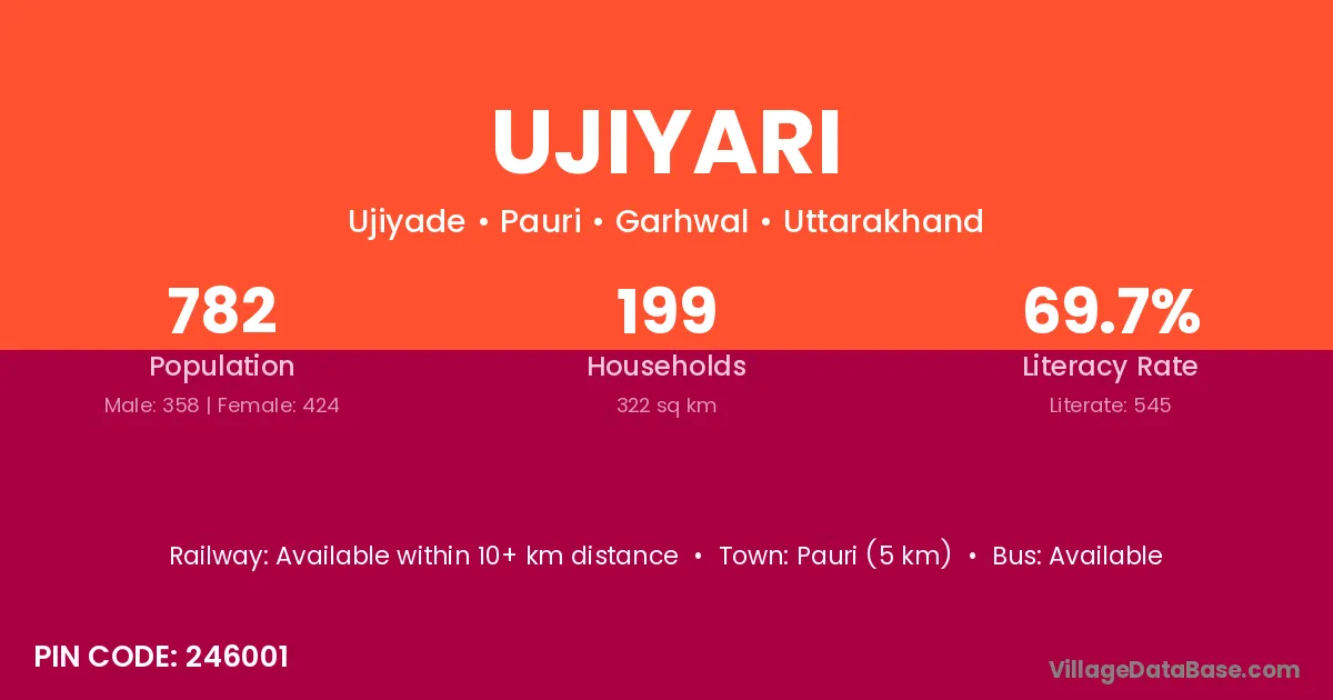 Pauri (5 km) is the nearest town to Ujiyari village for major economic activities and is located approximately 5 km away.