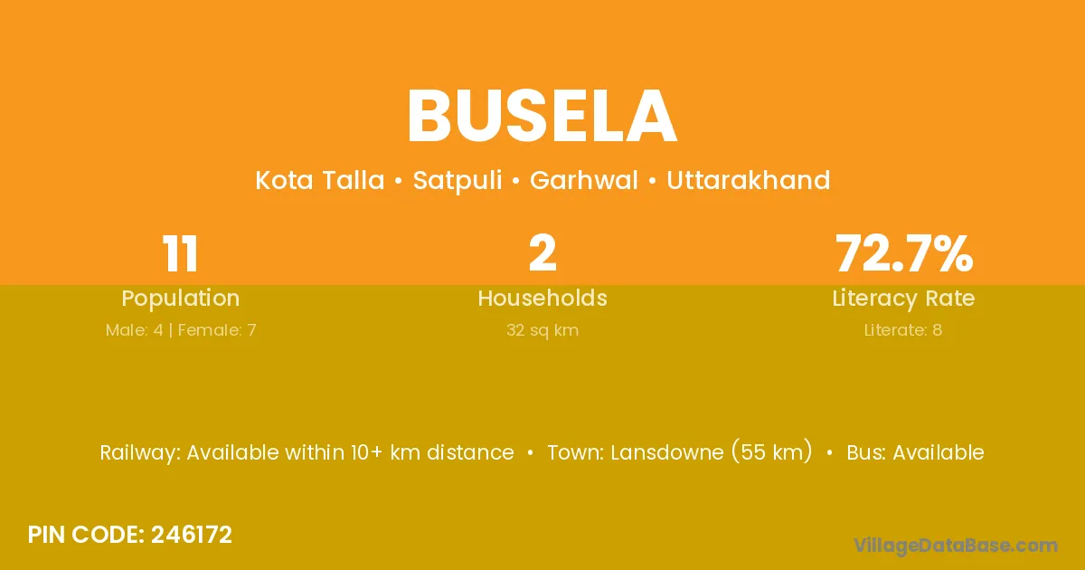 Busela village has a total population of 11 people, of which 4 are males and 7 are females.